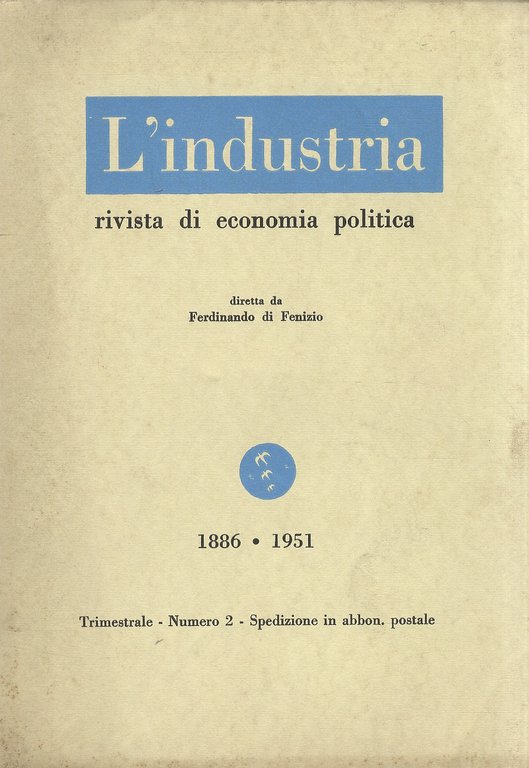INDUSTRIA (L'). Rivista di economia politica, diretta da Ferdinando di Fenizio. Numero 2, 1951.