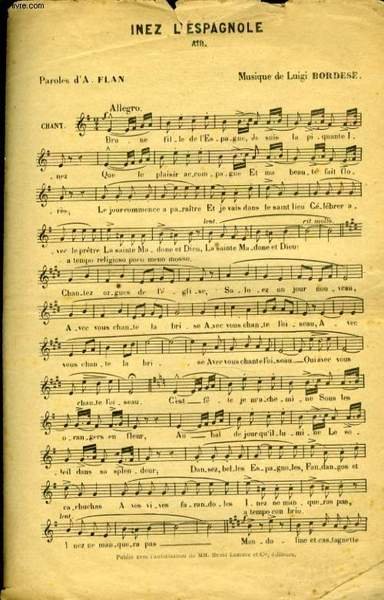 non daté. In-8. Broché. Etat d'usage, Plats abîmés, Dos satisfaisant, Intérieur frais. Non paginé, environ 4 pages. 2 Partitions pour chant seul +paroles. Légères déchirures sur les plats n'altérant pas la lecture de la partition. Partitions en recto verso. . . . Classification Dewey : 780.26-Partitions