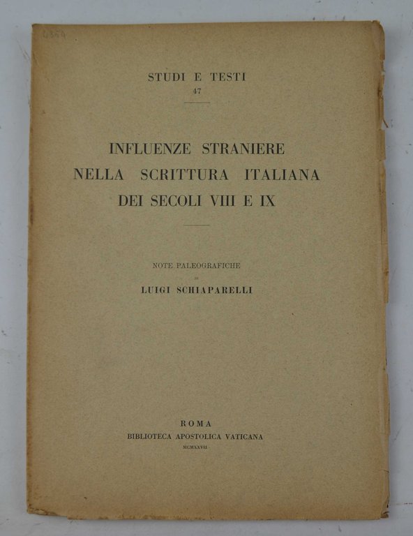 Influenze straniere nella scrittura italiana dei secoli VIII e IX. Note paleografiche.