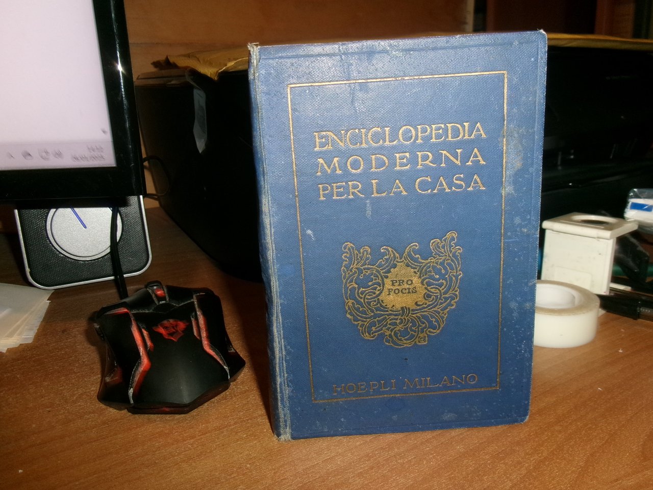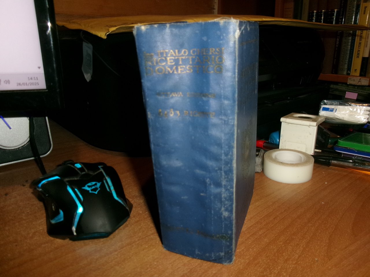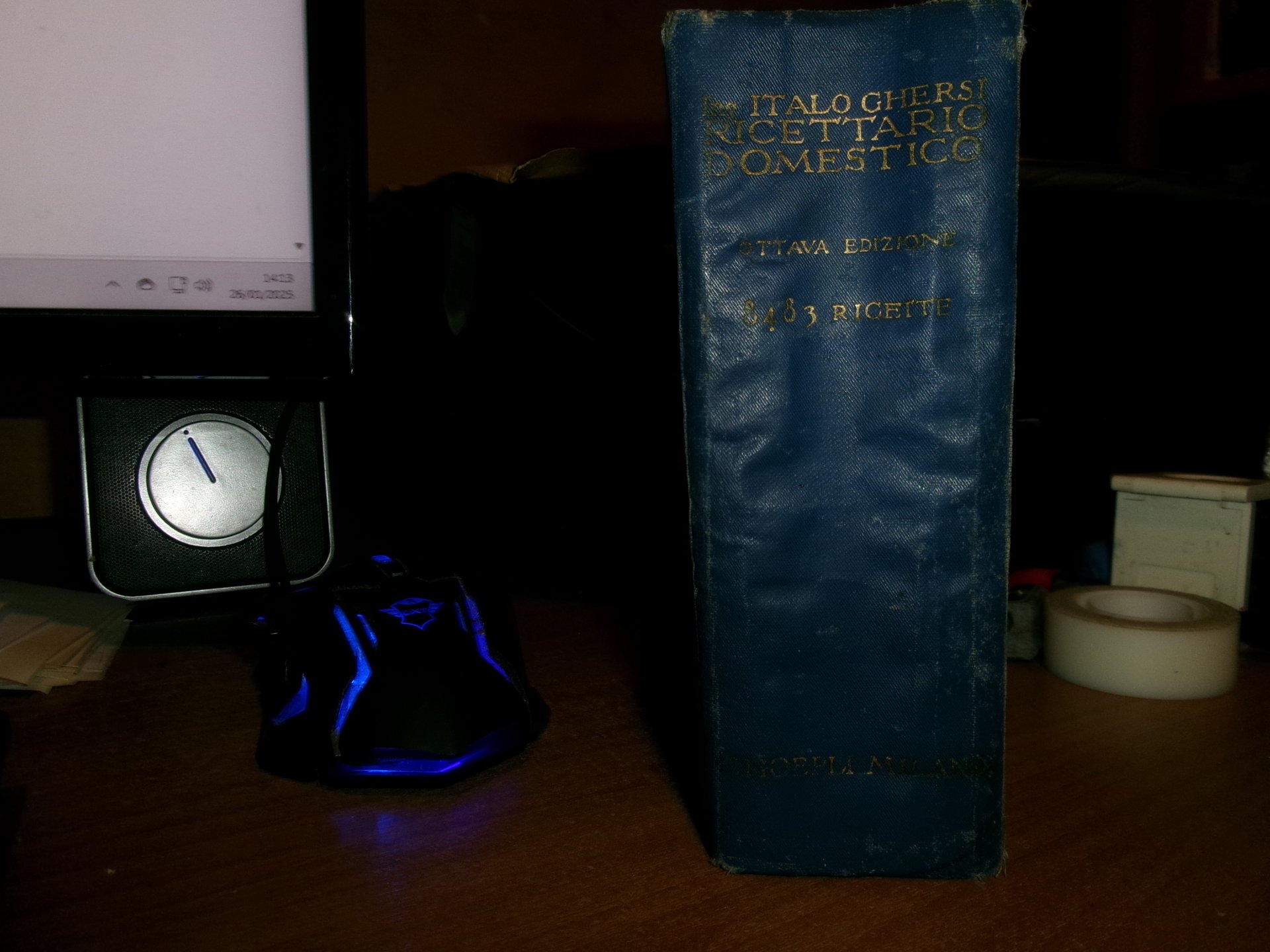 Ing. ITALO GHERSI. Ricettario Domestico. Enciclopedia Moderna per la Casa. Ottava edizione accresciuta e rimodernata. Milano, tela edit. bleu con titoli in oro leggermente sbiaditi. In-16°, tela edit. bleu con titoli dorati, tagli in rosso. 1481 pp. con 8483 ricette e 244 incisioni. Buono stato di conservazione con normali segni del tempo. Neg. mob. bianco comput.