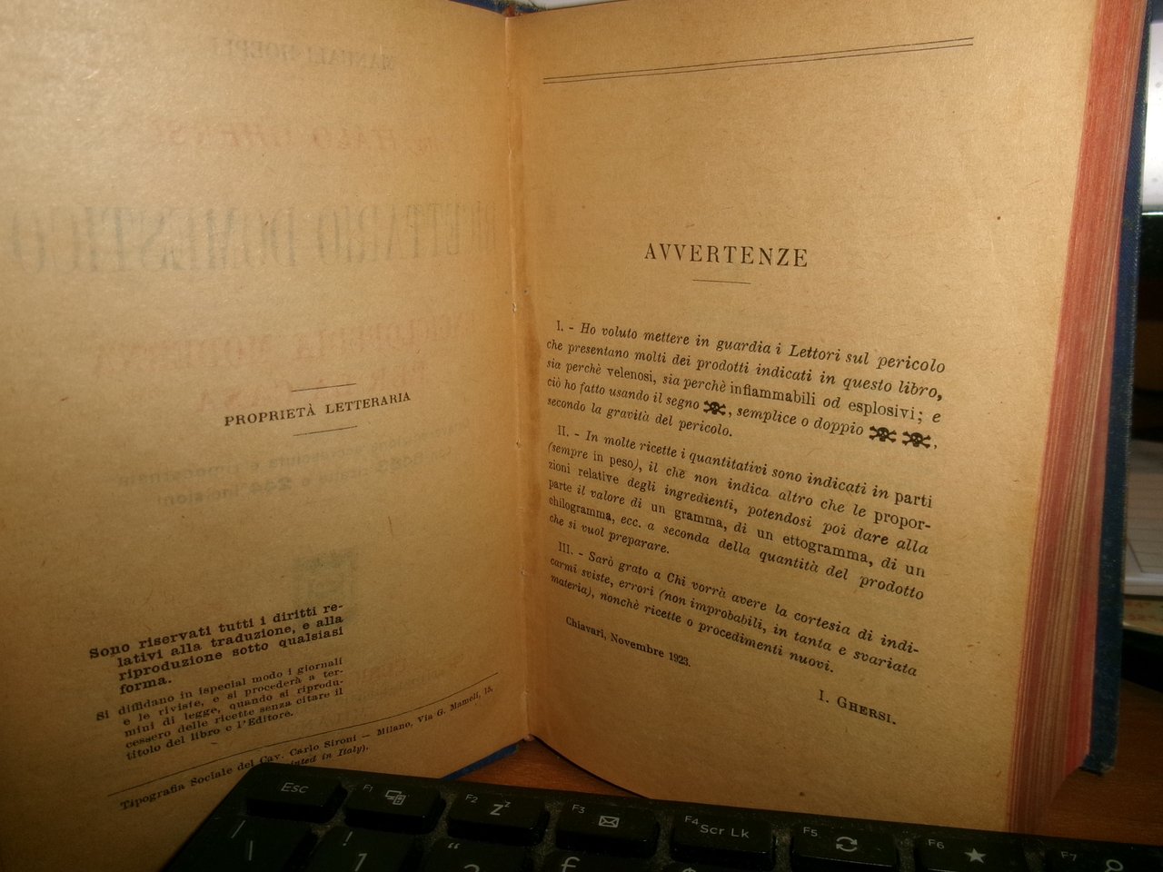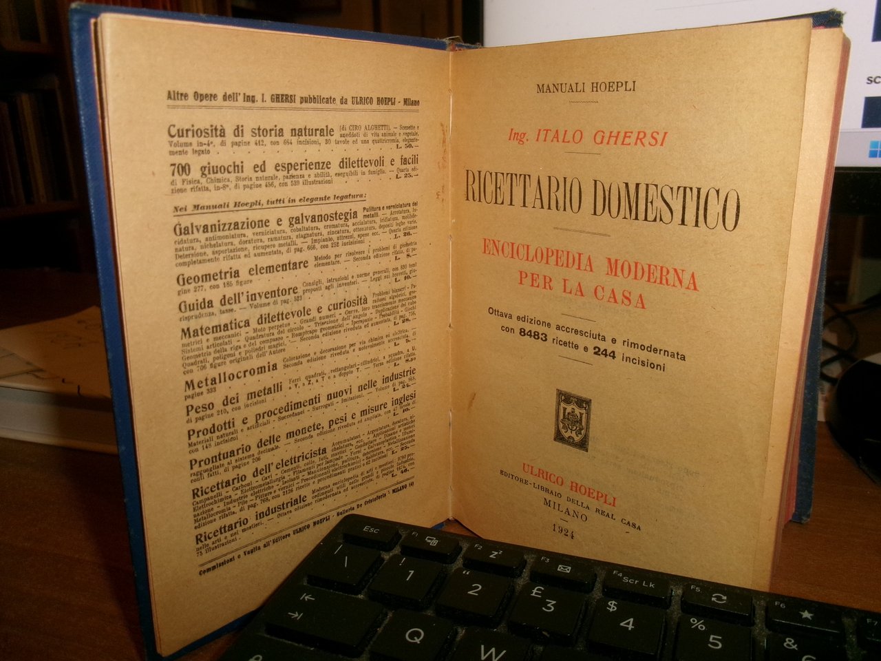 Ing. ITALO GHERSI. Ricettario... Enciclopedia Moderna per la Casa. HOEPLI, 1924.