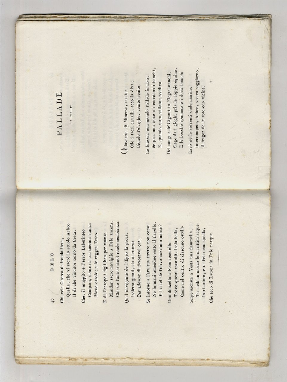 Parma, co' tipi bodoniani, 1824, in-8, br. coeva in carta color arancione (qualche restauro reintegrativo, ben fatto, al dorso), pp. [8], 85, [3]. La prima carta bianca. Brooks n. 1264. Bell'esemplare, a pieni margini.