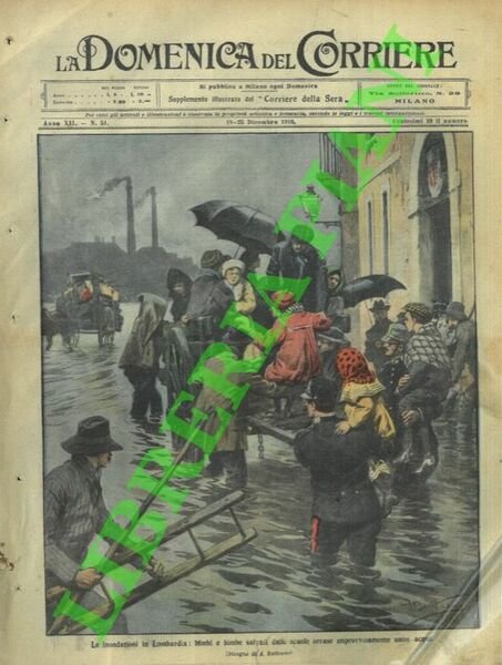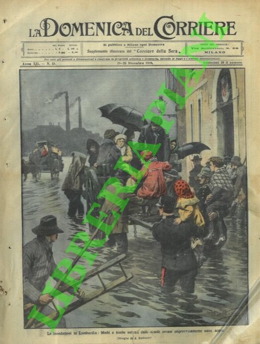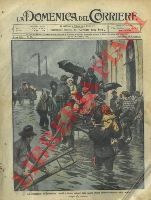 Milano, 18/12/1910, la sola copertina illustrata a colori, senza il fascicolo, della Domenica del Corriere.