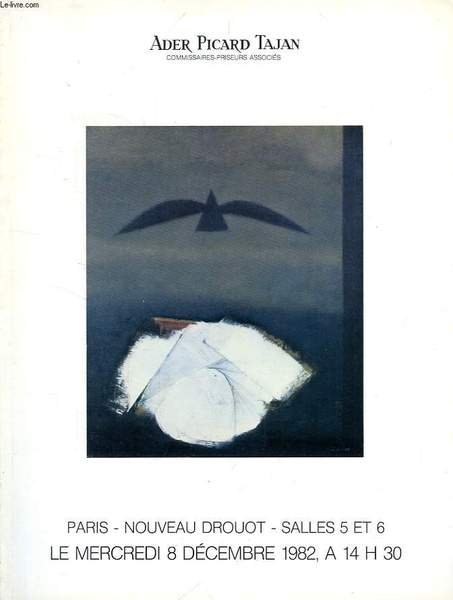 Ader Picard Tajan. 1982. In-8 Carré. Broché. Bon état. Couv. convenable. Dos satisfaisant. Intérieur frais. Env. 100 pages. Illustré de nombreuses photos en couleur et en noir et blanc, dans et hors texte. Vente aux enchères, déc. 1982, Nouveau Drouot. Dimanche, Chagall. Jeune femme, 1913, Zadkine. Pormeneurs sur les berges à Lavacourt, Monet.