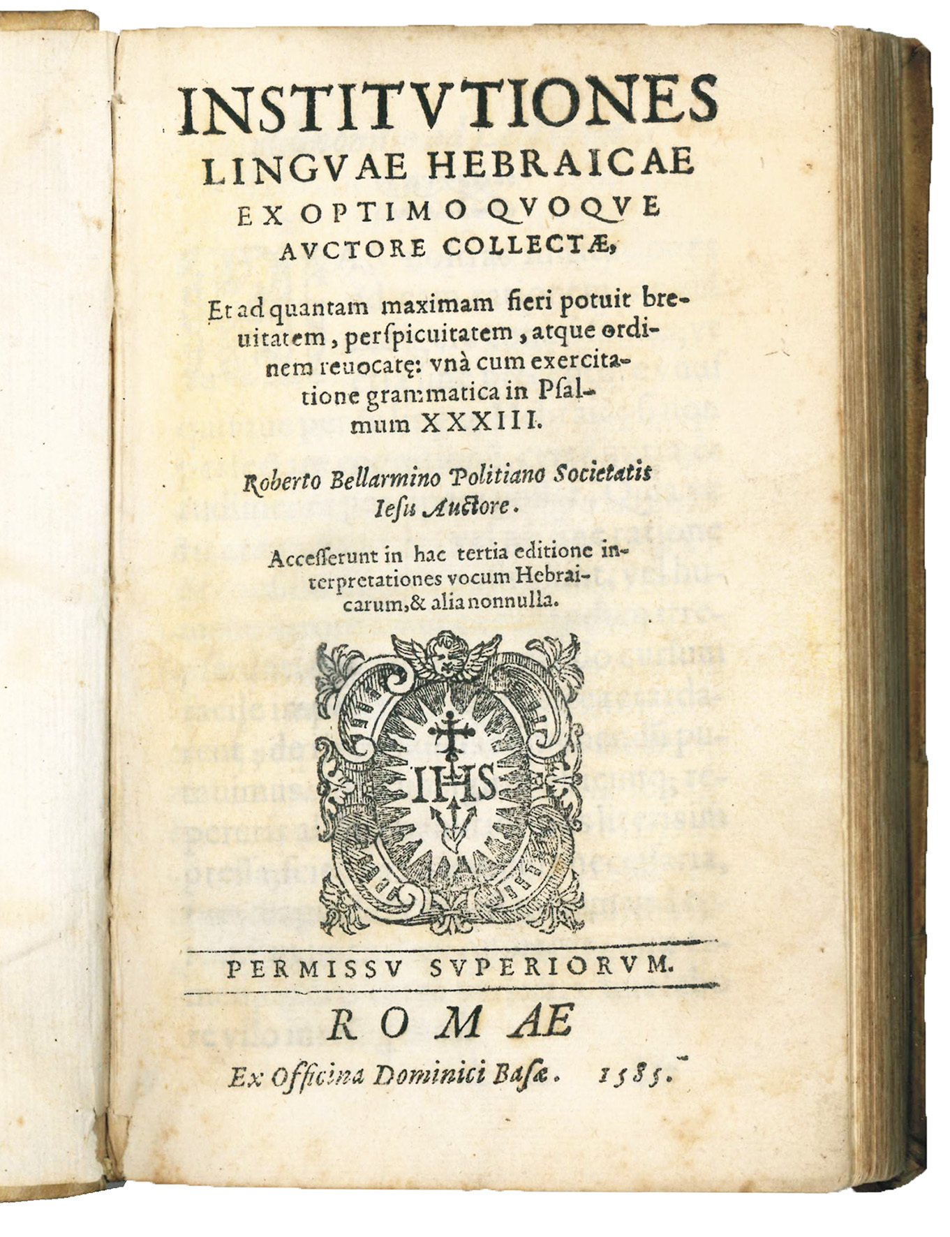 Institutiones linguae Hebraicae ex optimo quoque auctore collectae, et ad quantam maximam fieri potuit breuitatem, perspicuitatem, atque ordinem revocatae: unà cum Exercitatione grammatica in Psalmum XXXIII. Roberto Bellarmino Politiano Societatis Iesu auctore. Accesserunt in hac tertia editione interpretationes vocum Hebraicarum, & alia nonnulla