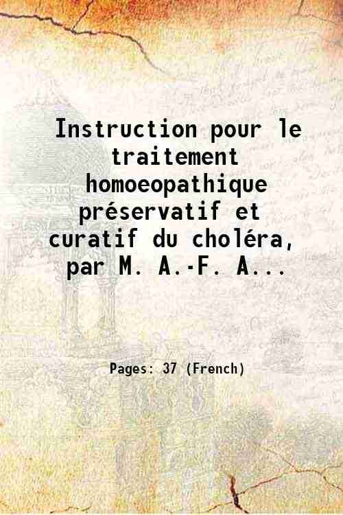 Instruction pour le traitement homoeopathique prÈservatif et curatif du cholÈra, par M. A.-F. Andrieu,. 1854