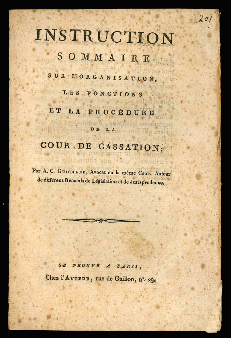 Instruction sommaire sur l'organisation, les fonctions et la procédure de la cour de cassation.
