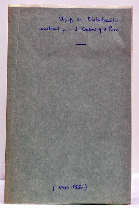4 pages. (20,5x13 Cm). Broché. Couverture postérieure. Notice descriptive et usage de cet appareil destiné à mesurer le sucre dans les urines diabétiques. Elle est illustrée d'une planche hors texte, representant differentes coupes du nouvel appareil. Mouillure et taches.