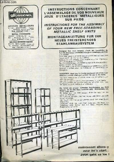 INSTRUCTIONS CONCERNANT L'ASSEMBLAGE DE VOS NOUVEAUX JEUX D'ETAGERES METALLIQUES SUR PIEDS.