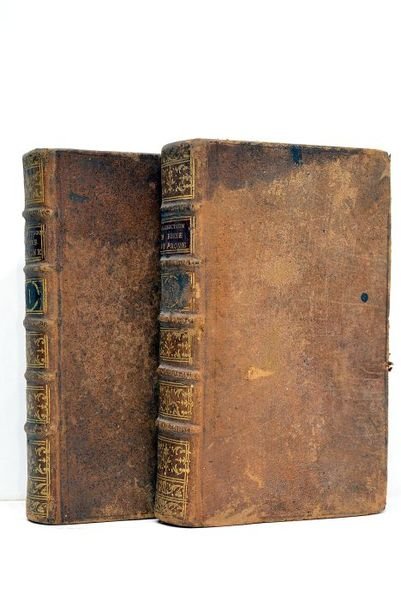 2 volumes. Tomes 1 et 5 seuls. VIII. 494 pages. + VIII. 565 pages. (17x11cm). Pleine basane. Dos à nerfs orné avec des motifs floraux. Pièces de titre et tomaison en lettres dorées. Dos un peu frotté. Coiffes élimées. Volume premier un peu déformé. Coupes frottées. Quelques épidermures sur les plats. Important manque sur le plat inférieur du cinquième volume. Infimes rousseurs à l'intérieur. Traces de mouillure au cinquième volume. Bon état intérieur par ailleurs.