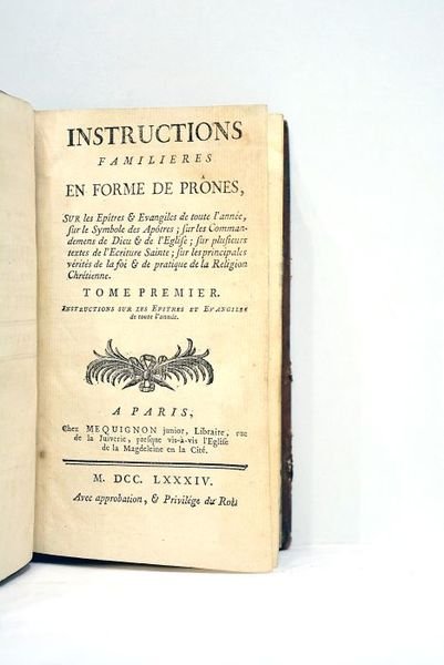 INSTRUCTIONS familieres en forme de prônes, sur les Epîtres et Evangiles de toute l'année, sur le symbole des apôtres, sur les commandemens de Dieu et de l'Eglise, sur plusieurs textes de l'Ecriture Sainte, sur les principales vérités de la foi et de pratique de la réligion chrétienne.