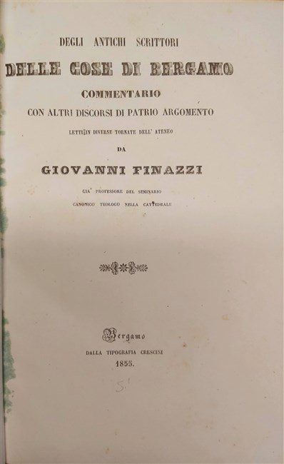 INTORNO AGLI ANTICHI SCRITTORI delle cose di Bergamo. Commentario del Prof. Abbate. letto in due pubbliche sessioni del 1841 e 1842 del Patrio Ateneo.