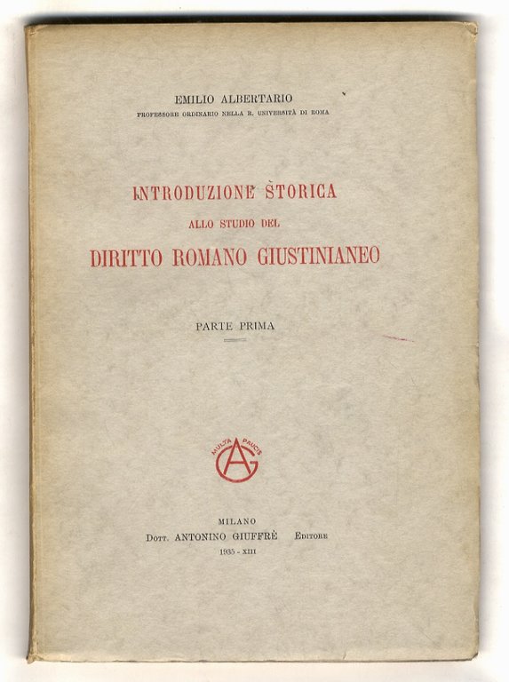 Introduzione storica allo studio del diritto romano giustinianeo. Parte prima. [Unica pubblicata].