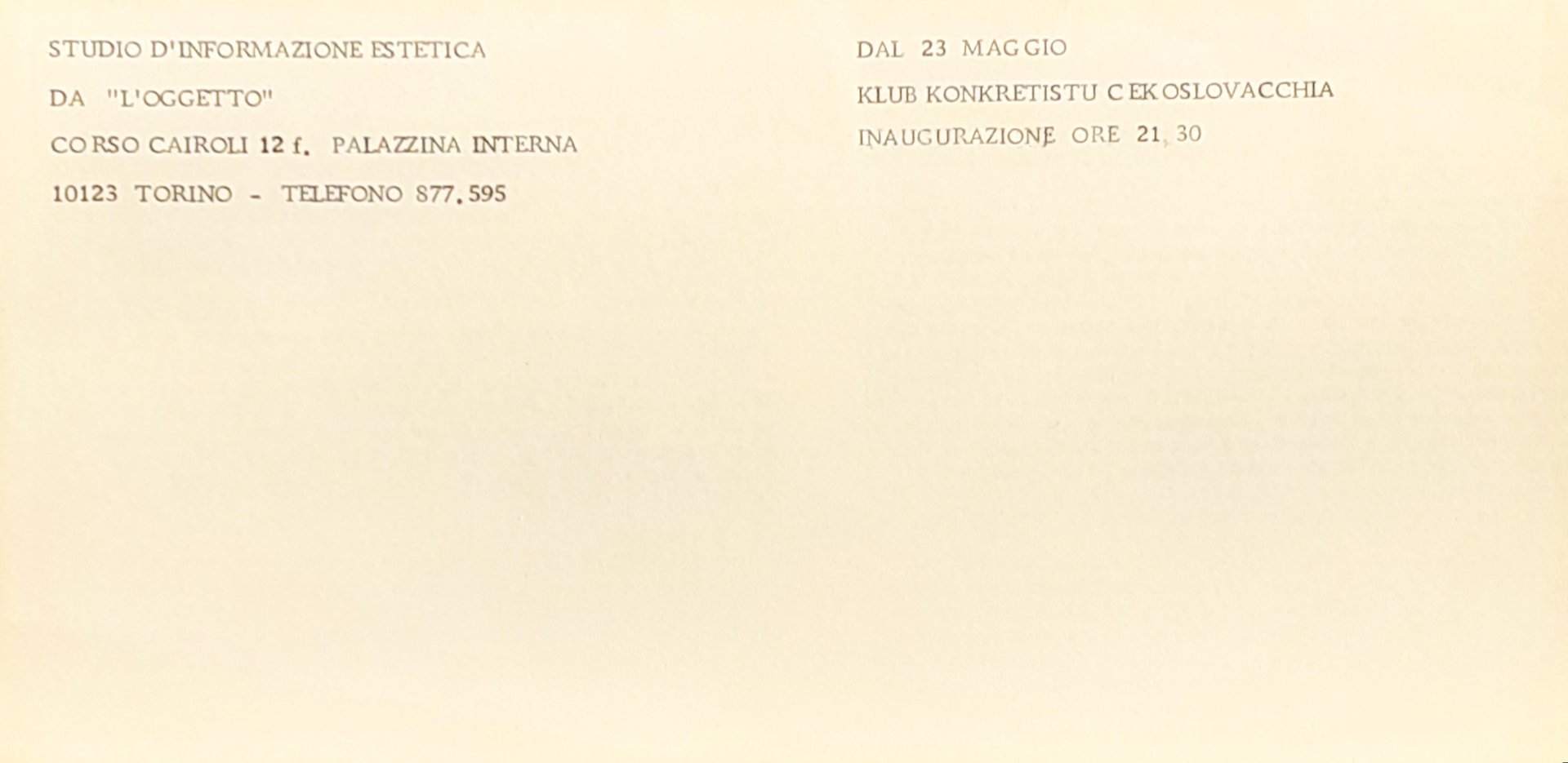 Invito Mostra club Concretisti - KK allo Studio d'informazione estetica Torino anni 70 ca.
