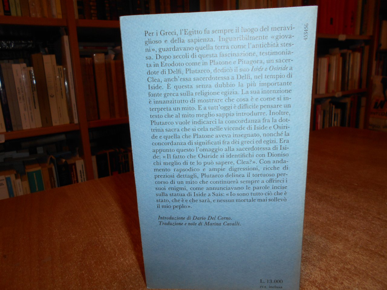 PLUTARCO. Milano, Adelphi, 1986. ISIDE e OSIRIDE. In-16°, br. con sovracopertina. 232 pp. Come nuovo. Neg. esot. mob. 10