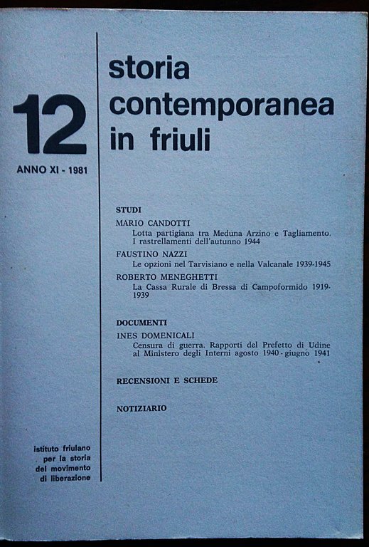 Istituto Friulano per la storia del movimento di liberazione. Storia contemporanea in Friuli. Anno XI- N. 12 - 1981. | Libri antichi e moderni |