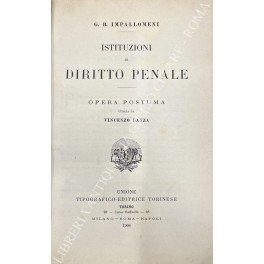 Istituzioni di diritto penale. Opera postuma curata da Vincenzo Lanza