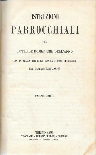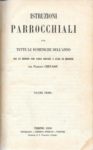 Istruzioni Parrocchiali per tutte le domeniche dell'anno con un metodo per farle servire a guisa di missione, 2 voll. in 1 tomo