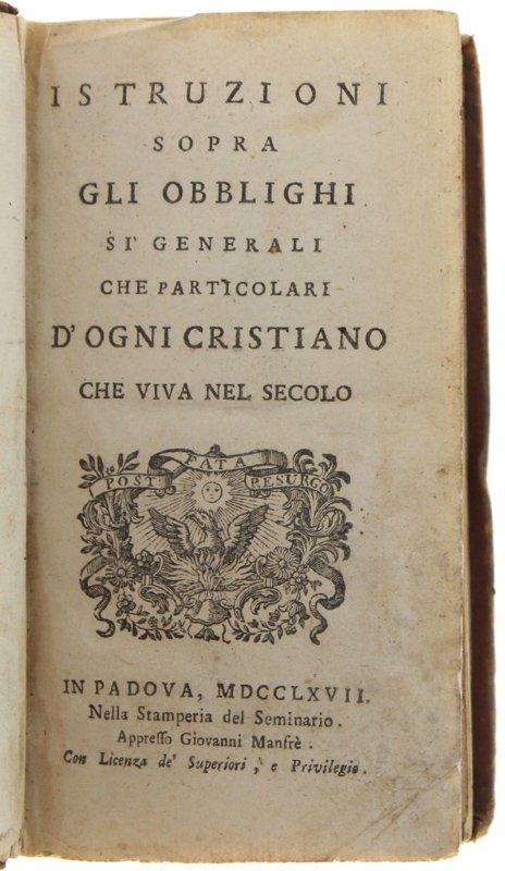 ISTRUZIONI SOPRA GLI OBBLIGHI SI' GENERALI CHE PARTICOLARI D'OGNI CRISTIANO CHE VIVA NEL SECOLO. | Libri antichi e moderni | Massini Carlo