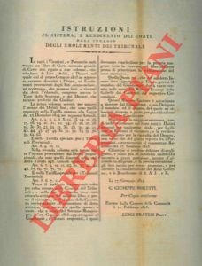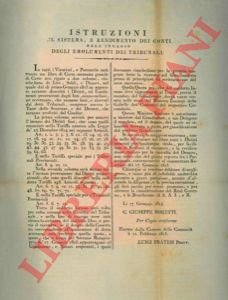 Istruzioni sul sistema e rendimento dei conti dell'incasso degli emolumenti dei tribunali.