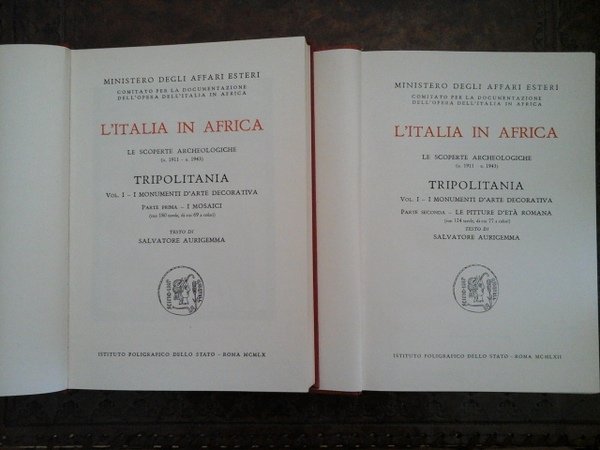 ITALIA IN AFRICA: SCOPERTE ARCHEOLOGICHE(1911 - 43): TRIPOLITANIA, VOL.1°:MONUMENTI D'ARTE DECORATIVA (DUE TOMI). PARTE PRIMA: I MOSAICI - PARTE SECONDA: LE PITTUE D'ETÀ ROMANA