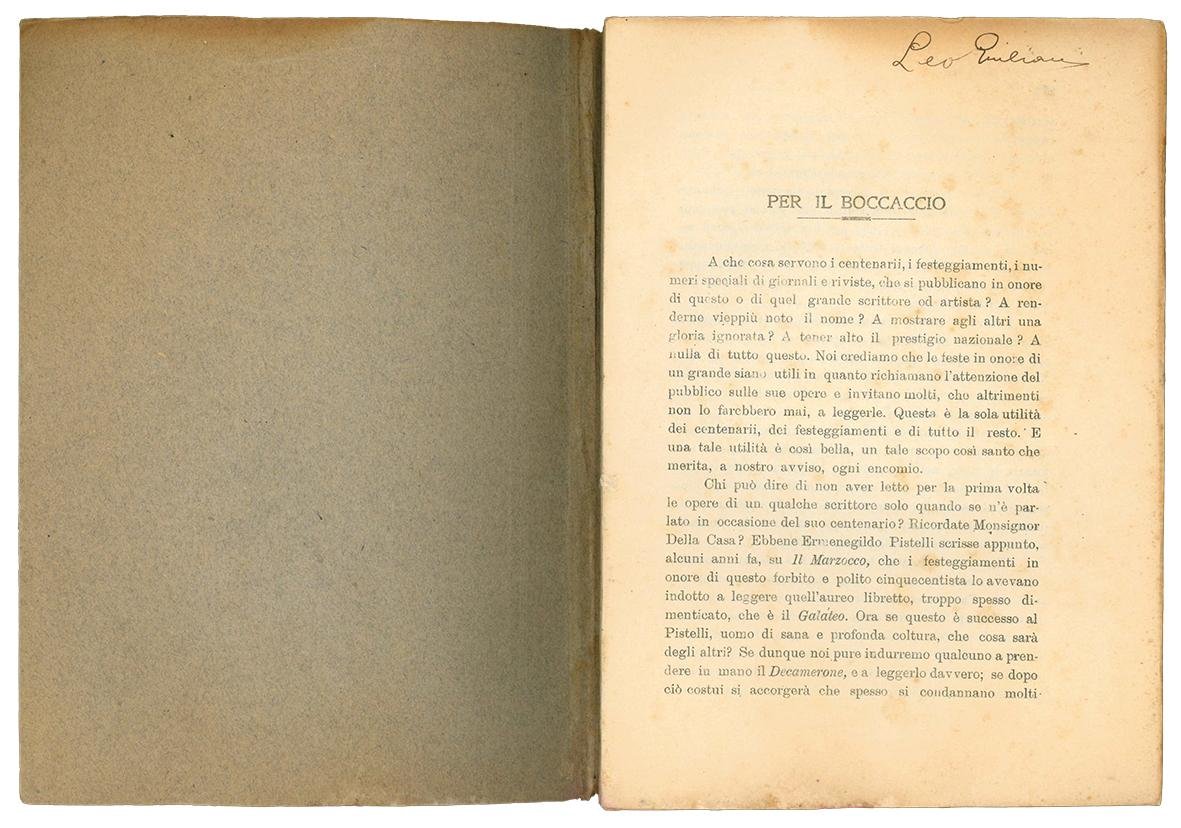 Italia. Rivista di storia e di letteratura. Numero unico dedicato al Boccaccio. XXI Decembre MCMXIII.