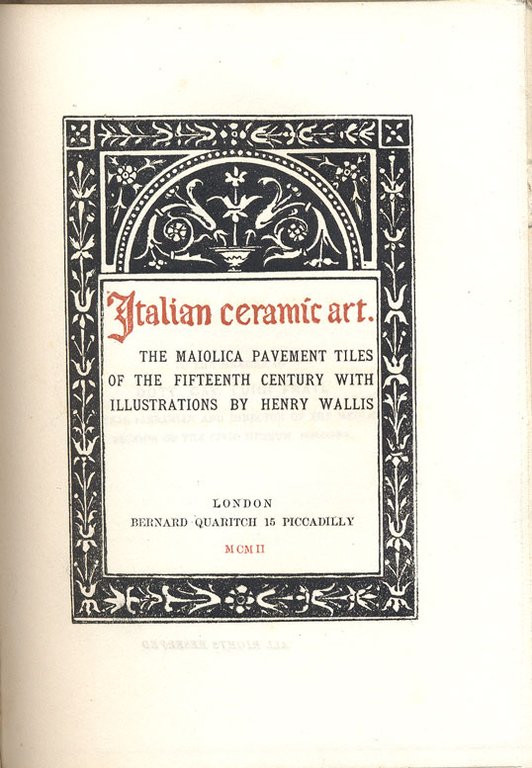 ITALIAN CERAMIC ART. - The Maiolica Pavement Tiles of the Fifteenth Century with Illustrations by Henry Wallis. | Libri antichi e moderni | WALLIS Henry