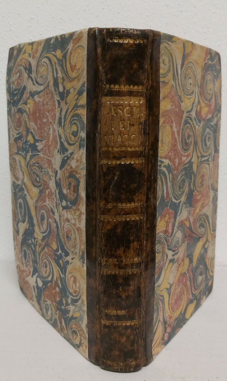 in-8, pp. XXXII, 243, leg. m. pelle coeva con tass. al d., angoli e carta dec. ai piatti. Tagli rossi. Con alcune carte geogr. su carta azzurra. Con una gr. carta geogr. a colori raffigurante l’Italia ripiegata in antip. e 13 tavv. ripp. raffiguranti i percorsi dei viaggi. Ediz. mancante a Fossati Bellani che registra quella di Milano del 1806.