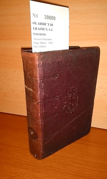 OLABIDE’TAR ERAIMUN, S.J. ITUN BERIA Yesu’ren Biotzaren Deya. Bilbo’n 1931 IX+ 716 p.+ indice. (16,5 cm) Enc. piel. Cortes color. Sello ant. prop. Texto orlado en rojo. Dos tintas. N1 (Ref.39809) euskera vascuence evangelio nuevo testamento