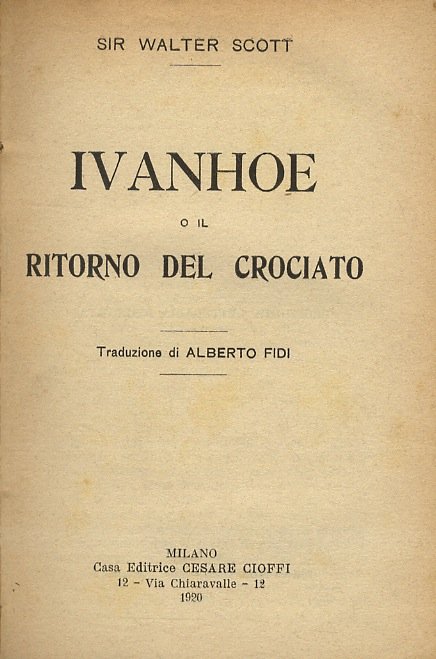 Ivanhoe ossia il ritorno del crociato. Traduzione di Alberto Fidi.