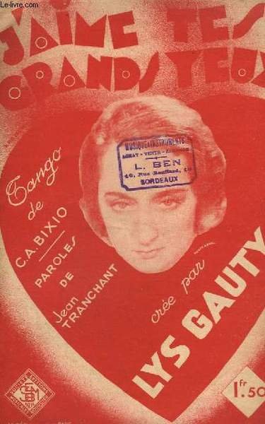 NON DATE. In-8. En feuillets. Bon état, Couv. défraîchie, Dos satisfaisant, Intérieur acceptable. 2 pages de partitions non paginées. Premier plat illustré en couleur monochrome par Kramer, avec une photographie de Lys Gauty. Tampon sur le premier plat ainsi que sur la dernière page. Paroles de Jean Tranchant. . . . Classification Dewey : 780.26-Partitions
