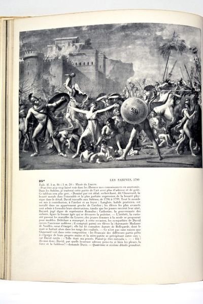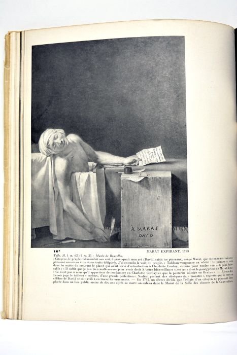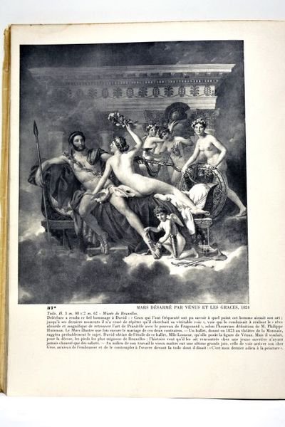 77 feuillets nun chiffrés. Nombreuses illustrations dans le texte. (31,5x25cm). Brohcé. Couverture imprimée de l'éditeur. Protection en papier cristal. Dos lisse titré. Protection un peu déchirée. Intérieur très satisfaisant. Etat général très agréable. Exemplaire particulièrement frais, enrichi de nombreuses photographies représentant 37 peintures de l'artiste J.L: David. Cette ouvrage fait partie de la collection: "Les demi-dieux".
