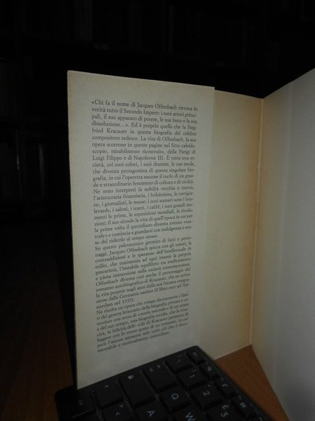 di Siegfried Kracauer. Casale Monferrato, Marietti Editore, 1984. Jacques Offenbach e la Parigi del suo tempo. In-8°, cart. edit. con risvolti. 306 pp. Lievi segni del tempo ma ottimamente conservato. Uff. stanzetta mob. sinistra 3 - 3 carc.