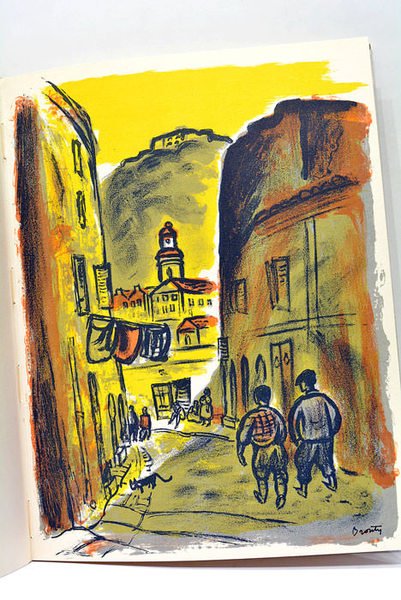 Page de titre imprimé en bleu et noir. 98 pages. 10 illustration plein page hors-texte dont 2 en couleurs. (32x24,5 cm). Broché. Couverture rempliée illustrée en bleu et noir. Plats légerement salis. Intérieur en très bon état. Edition originale. Ouvrage illustré de nombreux dessins de Charles Brouty en pleine page dont deux en couleurs. Edition numérotée 709/ 1500 sur papier Cellunaf. Dedicade signé et daté de l'auteur. Souvenirs d'Oran. Il s'agirait du dernier ouvrage sorti des éditions Baconnier à Alger.