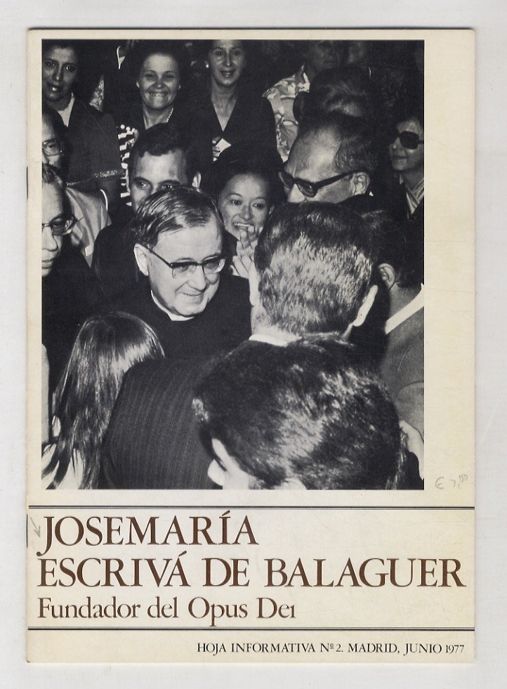 JOSE María Escrivá de Balguer. Fundador del Opus Dei. Hoja informativa n. 2. Madrid Junio 1977.