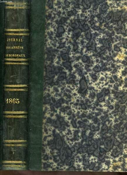 Journal des Arrêts de la Cour d'Appel de Bordeaux. An 1865 (40ème année).