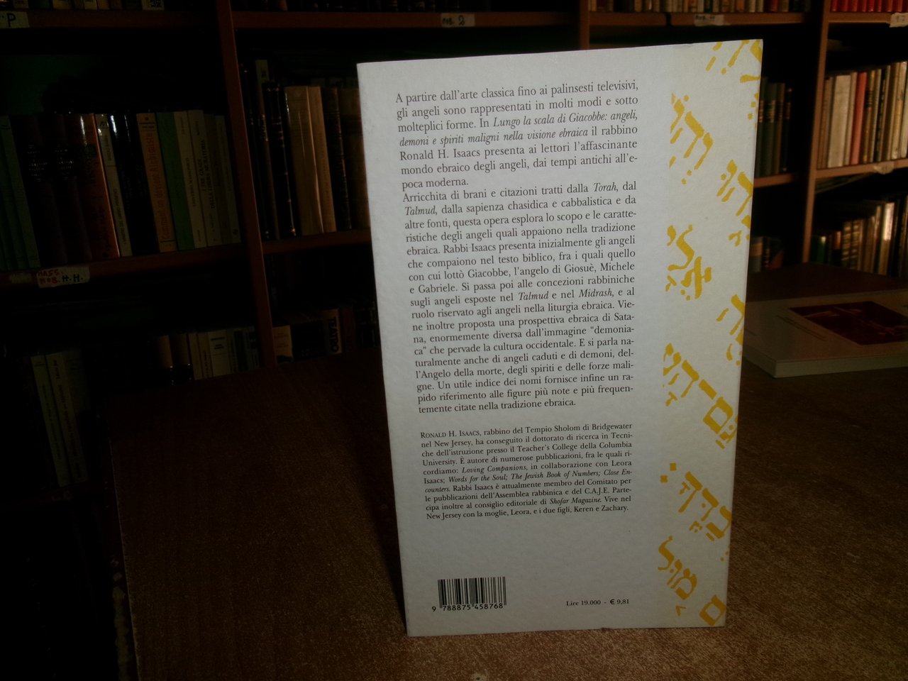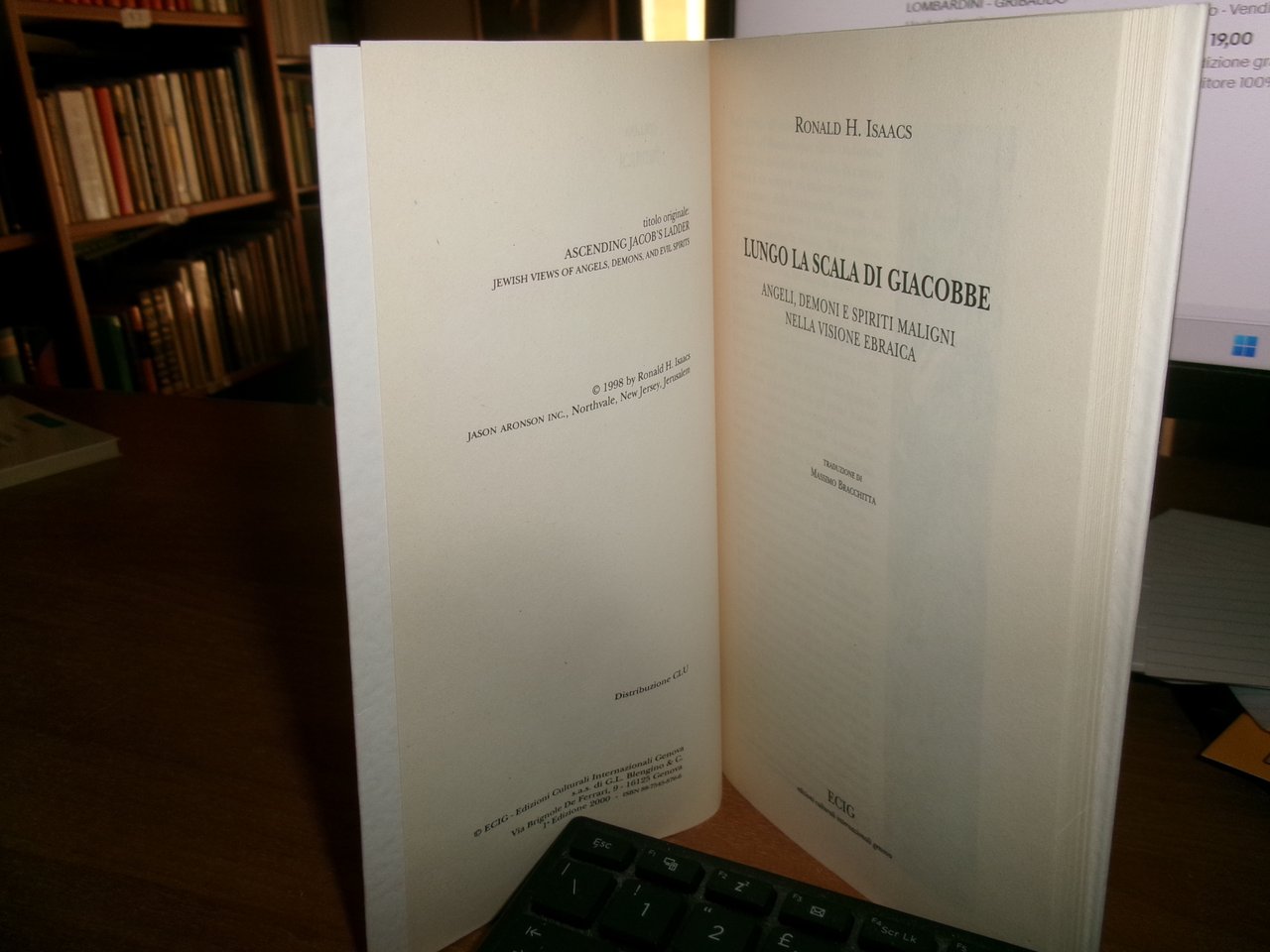 RONALD H. ISAACS. Genova, ECIG, 2000. JUDAICA. Lungo la Scala di Giacobbe. Angeli, Demoni e Spiriti Maligni nella visione ebraica. In-16°, cart. edit. con risvolti. 158 pp. Come nuovo. Neg. esot. mob. 50