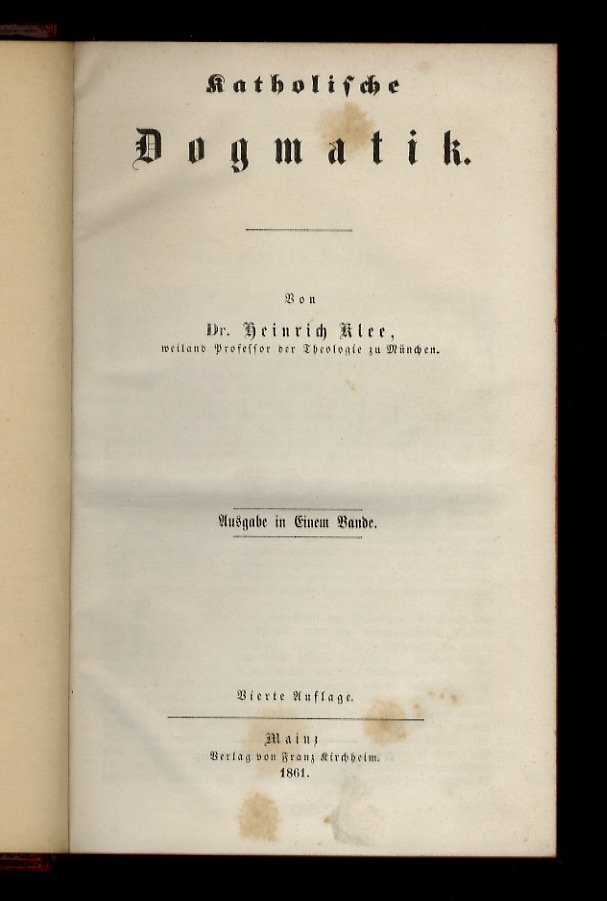 Mainz, Kircheim, 1861, in-8, bella legatura coeva in pieno marocchino rosso, nervature al dorso, titolo e fregi in oro, tagli rossi (qualche spellatura), pp. XLIV, 843. Condizioni molto buone.
