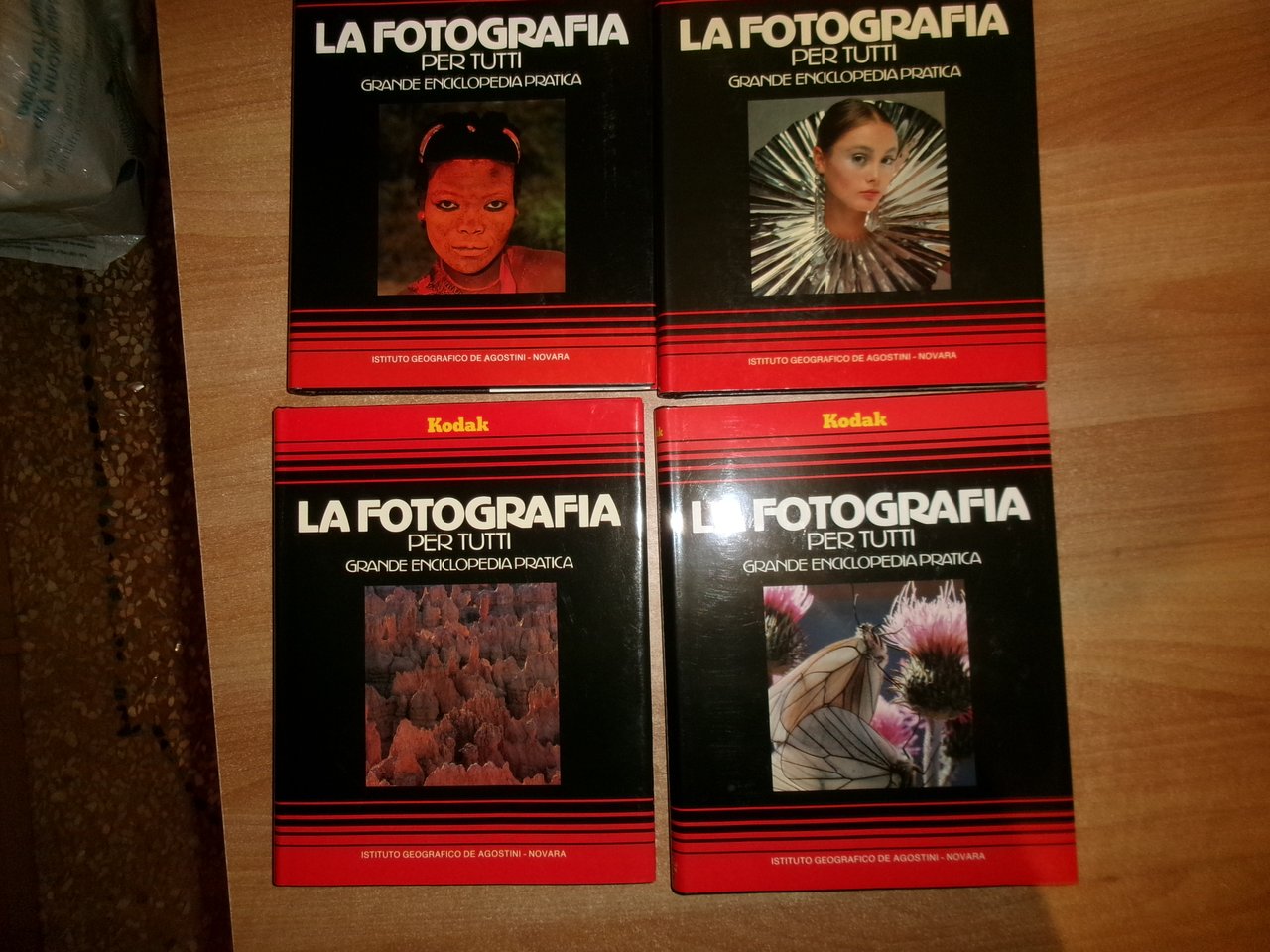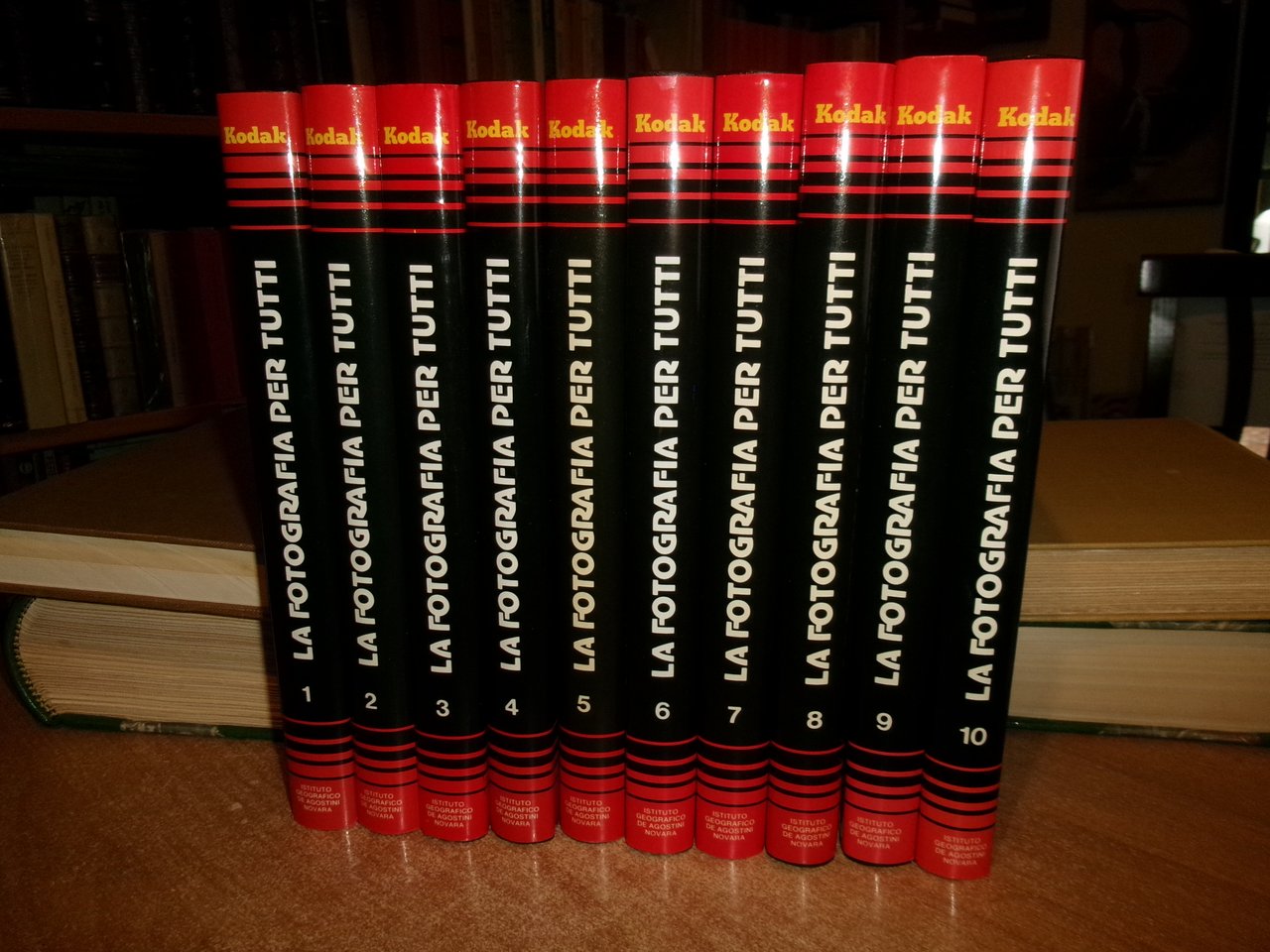 KODAK. La Fotografia per tutti Grande Enciclopedia Pratica. Novara, Ist. Geogr. De Agostini, 1980. 10 volumi in-8° grande, similpelle con titoli dorati ai dorsi e sovracopertine ill. a col. con circa 3000 pp. e centinaia di illustrazioni la maggior parte a colori n.t. Come nuova. Uff. stanz. TV mob. fronte nostro