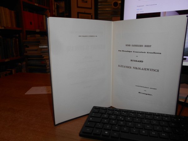 Kritisch-literärische Übersicht der Reisenden in Russland bis 1700, deren Berichte bekannt sind. 2 volumi in-8°, tela bleu edit. con titoli in oro ai dorsi. xxiv, 480 pp.; viii, 430 pp. Perfetto esemplare. Uff. B - I - 6 - 2