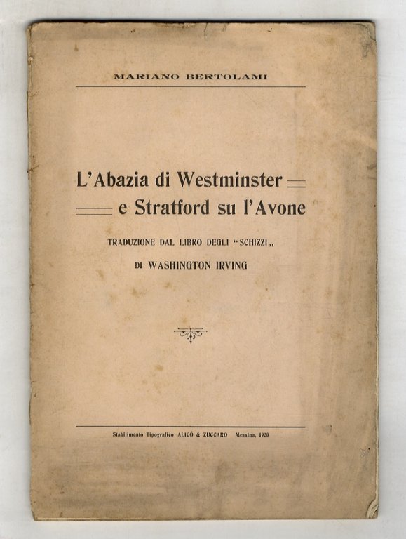 L'abazia [sic] di Westminster e Stratford su l'Avone. Traduzione dal libri degli "Schizzi" di Washington Irving.
