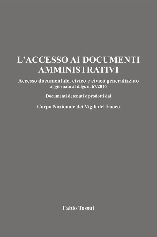 L'accesso ai documenti amministrativi. Accesso documentale, civico e civico generalizzato aggiornato al d.lgs. n. 67/2016. Documenti detenuti e prodotti dal Corpo Nazionale dei Vigili del Fuoco