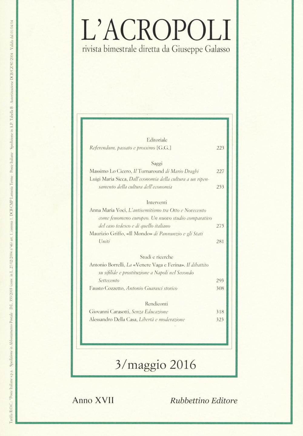 Rivista bimestrale di politica e varia cultura diretta da Giuseppe Galasso.