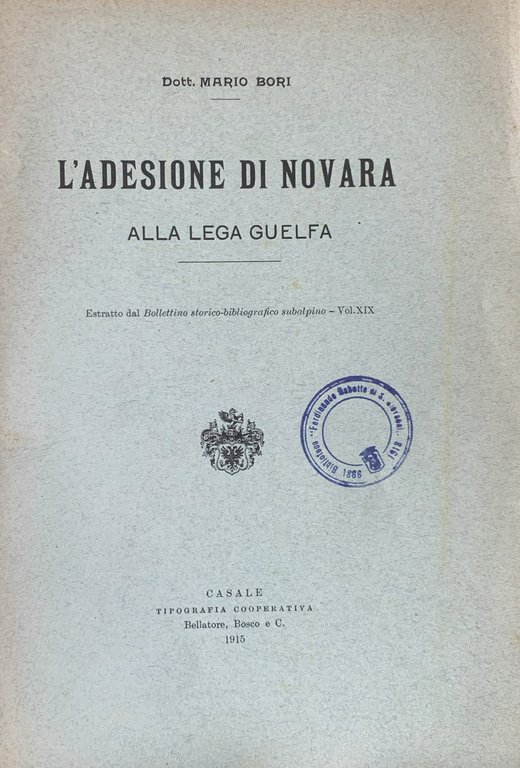 I ed.. Estratto dal "Bollettino storico-bibliografico subalpino", Vol. XIX, 1915. VIII, 4, brossura in cartoncino liscio verde acqua con titoli in nero. Il saggio è datato Torino, 1915. Stato buono (copertina leggermente brunita ai margini - timbro blu bibliotecario annullato al primo piatto della copertina - pagine lievemente brunite).