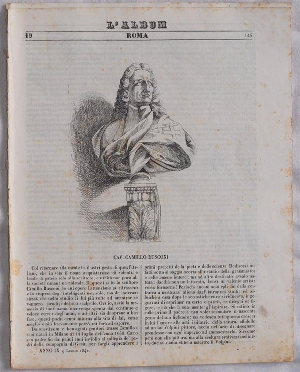 L'ALBUM DI ROMA 9 LUGLIO 1842