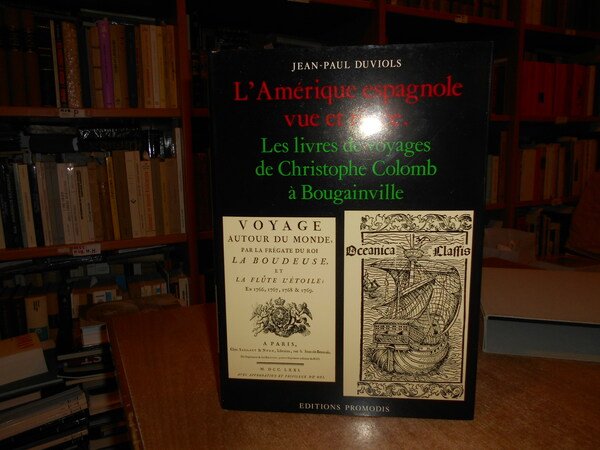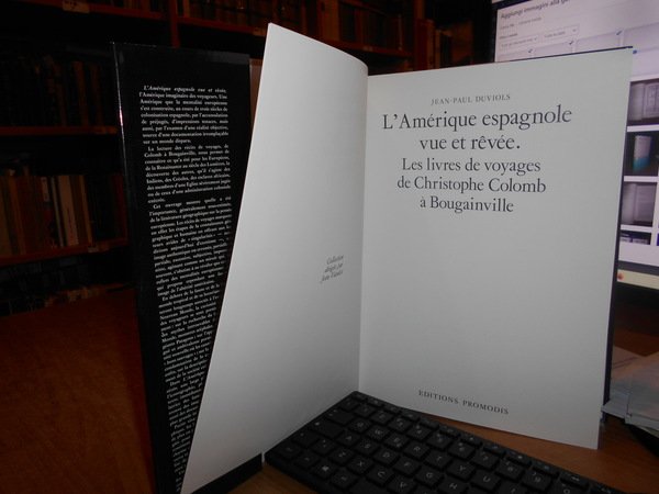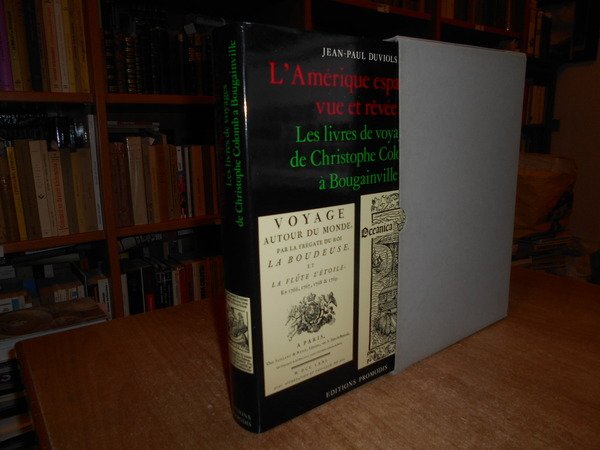 Jean-Paul Duviols. Paris, Editions Promodis, 1985. L'AMERIQUE ESPAGNOLE VUE ET REVEE. Les livres de voyages de Christophe Colomb à Bougainville. In-4°, tela edit. beige con titolo in oro al dorso, sovracopertina ill. a col. 489 pp. con innumerevoli illustrazioni a colori e in bianco e nero n.t. In stato di nuovo conservato in astuccio muto. Testo in francese. Uff. B - II - 7 - 2
