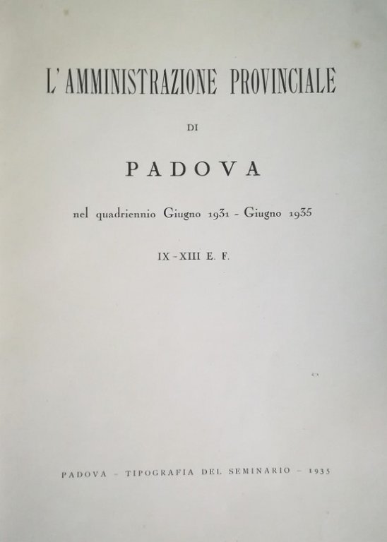 L' AMMINISTRAZIONE PROVINCIALE DI PADOVA NEL QUADRIENNIO GIUGNO 1931 - GIUGNO 1935