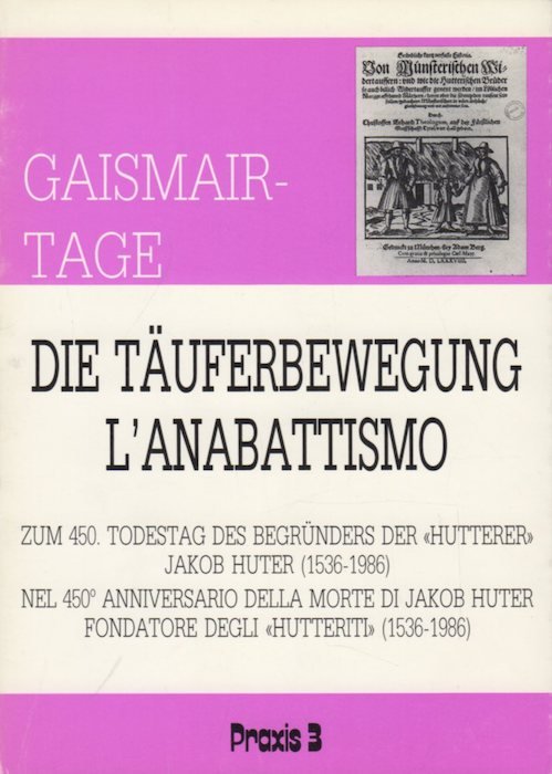 L'anabattismo: atti del convegno in occasione del 450° anniversario della morte di Jacob Huter (1536-1986), Bolzano 1986 = Die Täuferbewegung: Tagung zum 450. Todestag Jakob Huters (1536-1986), Bozen 1986.