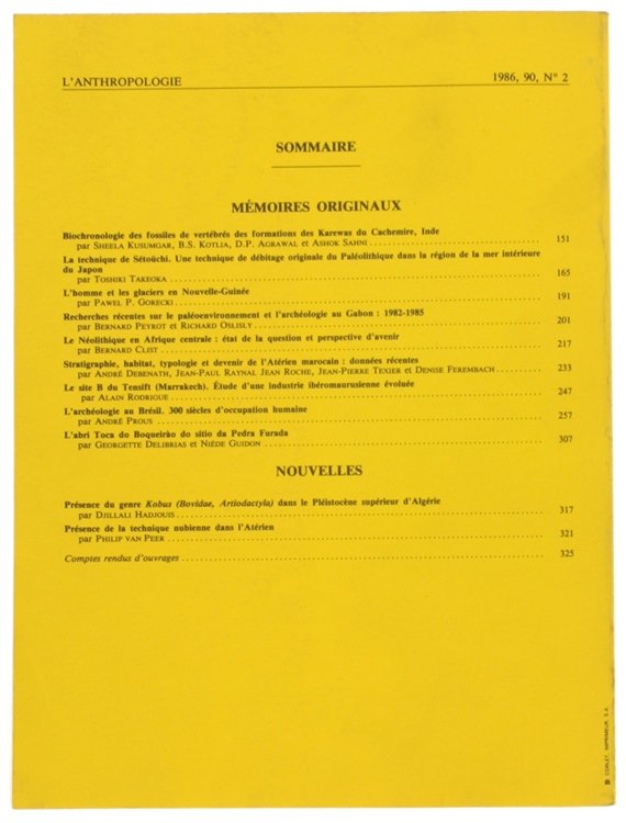L'ANTHROPOLOGIE. Tome 90 - 1986. No. 2. | Libri antichi e moderni | Collectif (Rédacteur En Chef: Henry De Lumley)