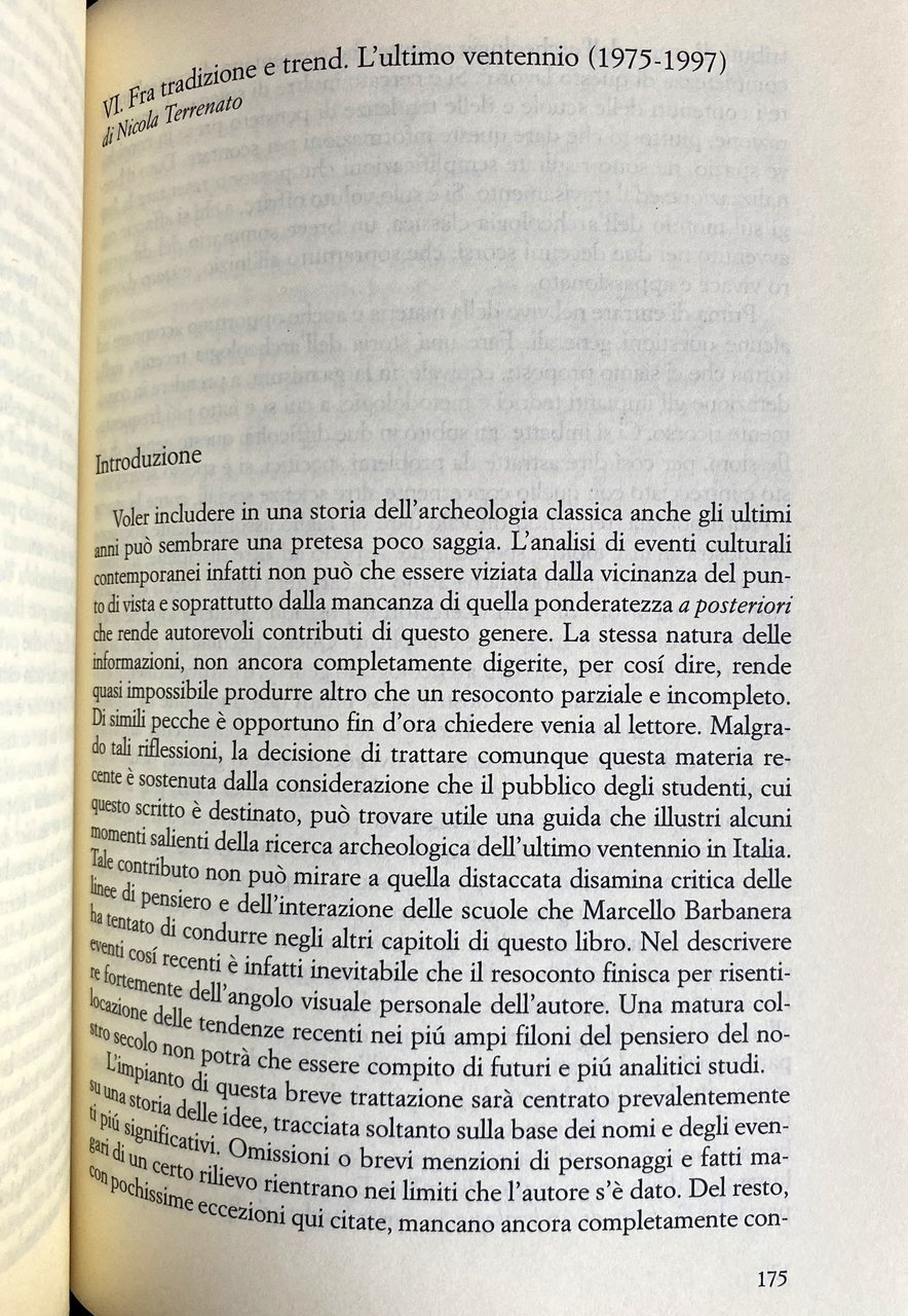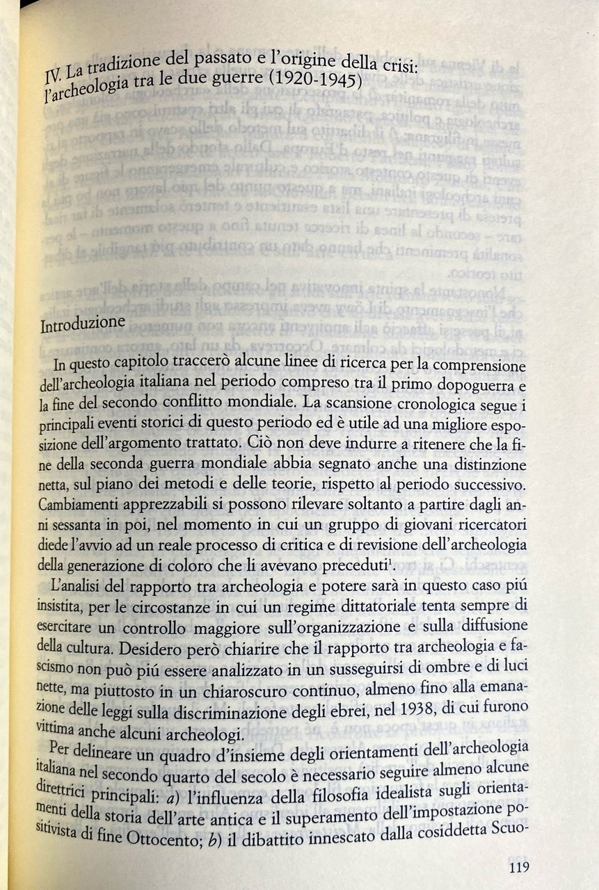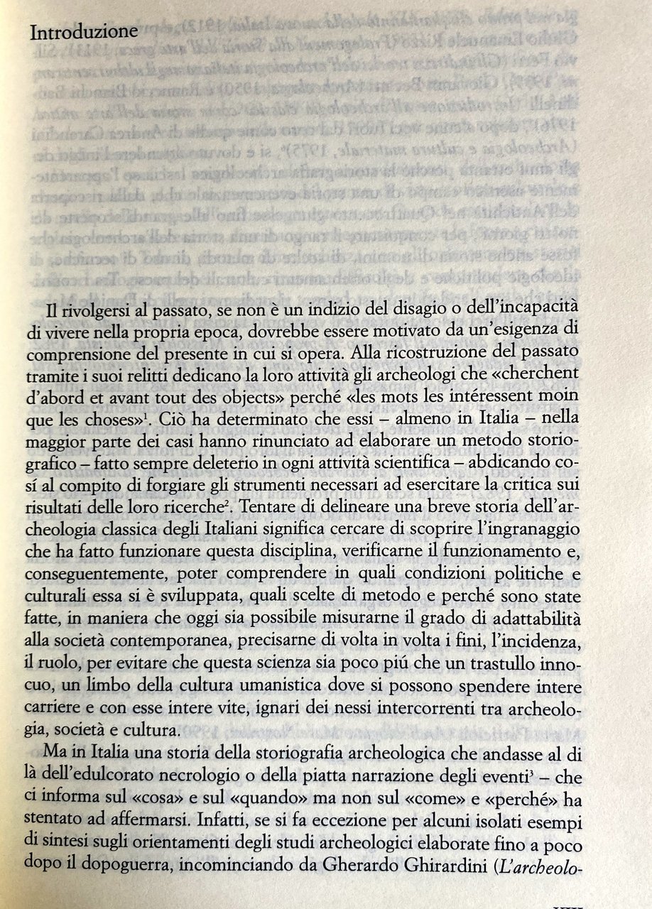 Soggetti: Archeologia classica Storia dell'arte greca romana Johann Joachim Winckelmann Theodor Mommsen Antiquaria Michele Amari Baccelli Achille Adriani Carlo Anti Francesco Maria Avellino Benndorf Bendinelli Coarelli Comparetti Contestabile Conze Curtius Pericle Ducati Ranuccio Bianchi Bandinelli Boeck Bonghi Brunn Lamboglia Von Humboldt Levi Fabretti Giuseppe Fiorelli Furtwangler Gerhard Giglioli Goethe Lowy Scienza Scuola archeologica Pompei Ercolano Scoperte Reperti Scavi archeologici Roma capitale Antichità Stato Istituzioni Pratica Tendenze Europa Insegnamento Università Didattica Superiore Musei statali Tedeschi Paolo Orsi Giacomo Boni Rodolfo Lanciani Formazione Ricerche Grecia Colonialismo Tradizione Guerre Arte etrusca Idealismo Metodi Teorie Culto Romanità Politica Fascismo Scavo Società Archeologi italiani Dialoghi Dibattito Cultura Metodo Trend Procedure Campo Marxismo New Archaeology Bibliografia Riferimento Studi Saggi Libri rari fuori catalogo Arnaldo Momigliano Amedeo Maiuri Marchand Michaelis Minervini Mussolini Biagio Pace Pigorini Paribeni Pernier Ricci Riegl Rizzo Romanelli Salinas Schliemann Schiering Settis Semper Spinazzola Pasquale Villari Welcker Wolf Torelli Zanotti Bianco Fausto Zevi Gherardo Ghirardini Bencivenni Belle Arti Ottocento Novecento Vittorio Emanuele II Troia Micene Olimpia Iran Iraq Pergamo Creta Civiltà minoica Germania Italia Dodecaneso Sporadi Rodi Francovich Alessandro Della Seta Allievi Andrea Carandini Antiquariato Atene Cattedra Collezione Commissione Contesto Convegno Catania Critica DGABA Dibattiti Direzione Disciplina Edoardo Brizio Epigrafia Federico Halbherr Felice Barnabei Lavoro Löwy Manacorda Materiale Metodologica Ministro Missione Monumenti Museo Napoli Paese Paletnologia Periodo Positivismo Preistoria Problemi Professore Progetto Pubblica istruzione Ricerca Ricostruzione risultati Stratigrafico Scientifica Scienze Soprintendenza Topografia Mediterraneo Orientamenti Interpretazione Cantieri Nibby Altertumswissenschaft Ennio Quirino Visconti Restaurazione Lord Elgin Classical History of Greek Roman Fine Arts Antiquarian Science Archaeological School Pompeii Herculaneum Discoveries Finds Excavations Rome Capital Antiquity State Institutions Practice Trends Europe Teaching University Higher Education Museums Germans Training Research Greece Colonialism Tradition Wars Etruscan Idealism Methods Theories Cult Romanity Politics Fascism Excavation Society Italian Archaeologists Dialogues Debate Culture Method Procedures Field Marxism Bibliography Reference Studies Essays Rare Books Out of Print Nineteenth Twentieth Century Troy Mycenae Olympia Pergamon Crete Minoan Civilization Germany Italy Dodecanese Sporades Rhodes Students Antiques Athens Chair Collection Commission Context Conference Criticism Debates Management Discipline Epigraphy Works Materials Methodology Minister Mission Monuments Museum Naples Country Palethnology Period Positivism Prehistory Problems Professor Project Public Reconstruction Results Stratigraphic Scientific Sciences Superintendence Topography Mediterranean Orientations Interpretation Restoration Sites